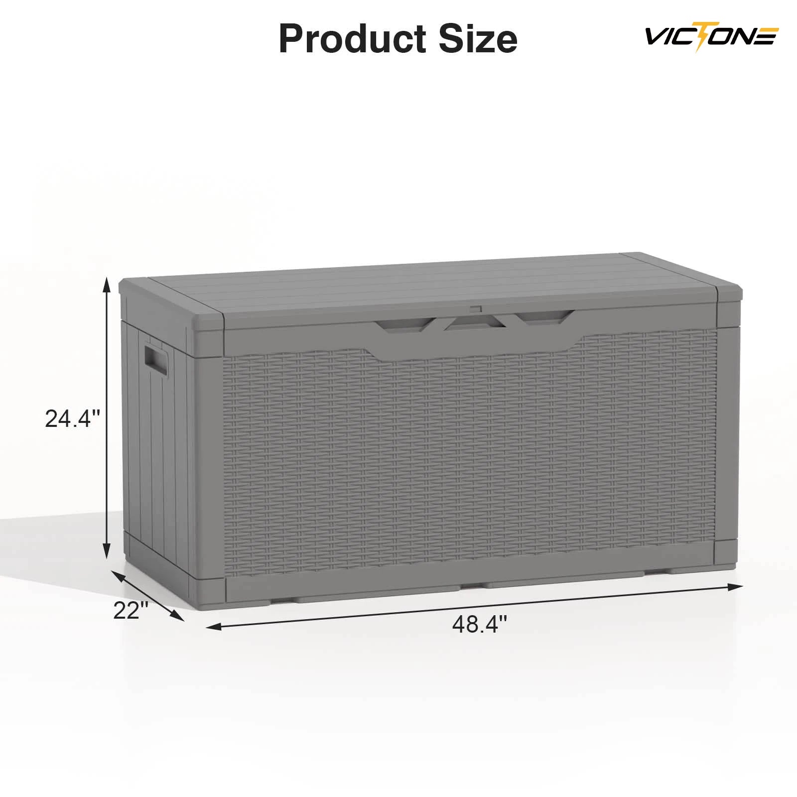 【Spacious and Versatile】The deck box can store up to 100 gallons of items, such as patio furniture, pool accessories, toys, garden tools, and sports equipment. You can also use it as a bench to seat two people comfortably, with a weight capacity of 660 lbs.
