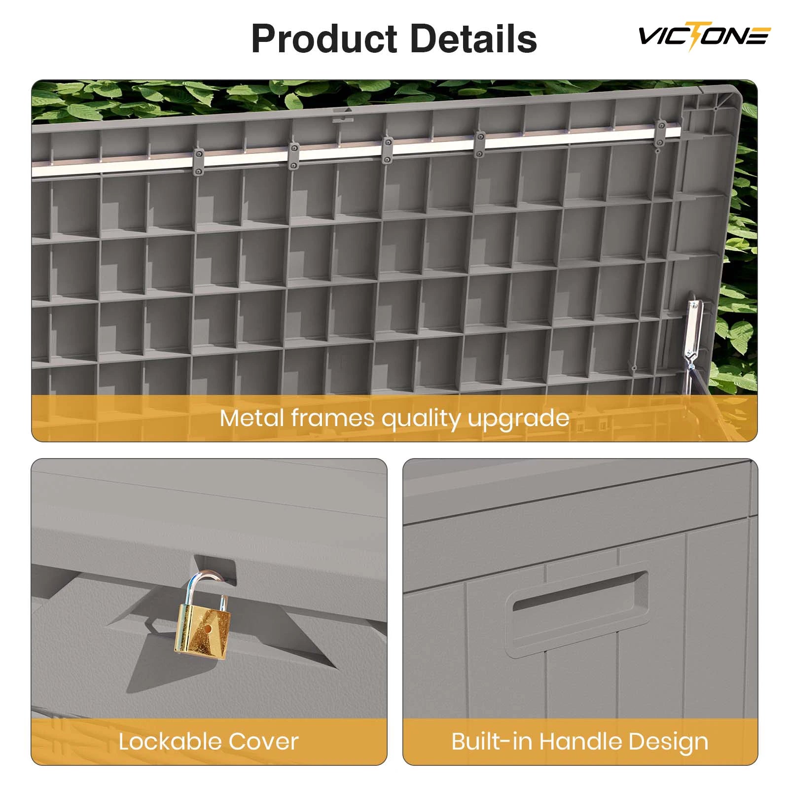 【Durable and Weather-Resistant】The deck box is made of high-quality resin material that is waterproof, rust-proof, and weather-resistant. It can withstand harsh weather conditions and keep your items safe and dry.