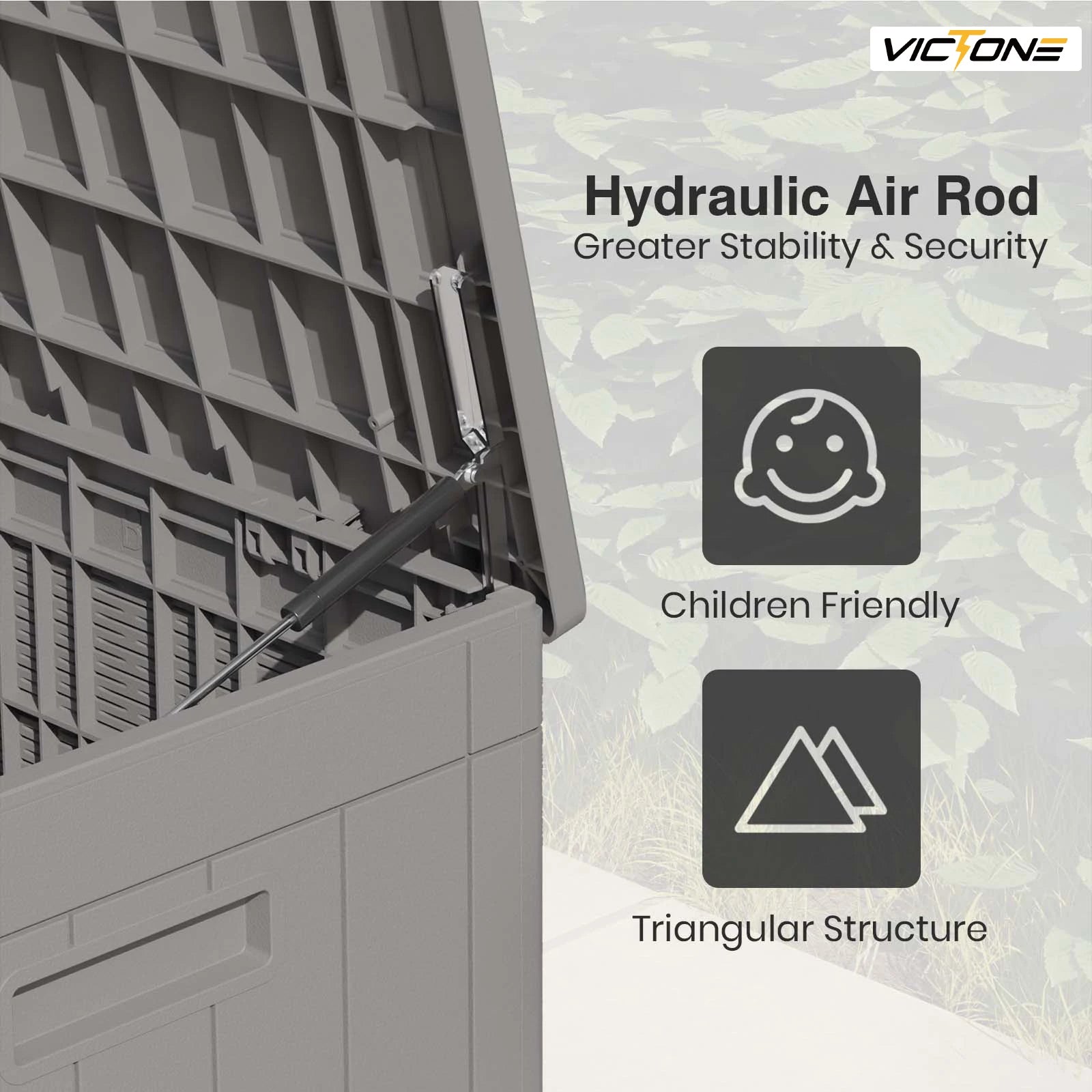 【Secure and convenient】The deck box features a lockable lid for extra security, and a hydraulic rod for easy opening and closing. You can access your items quickly and easily, without worrying about losing them or damaging them.