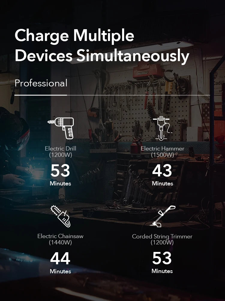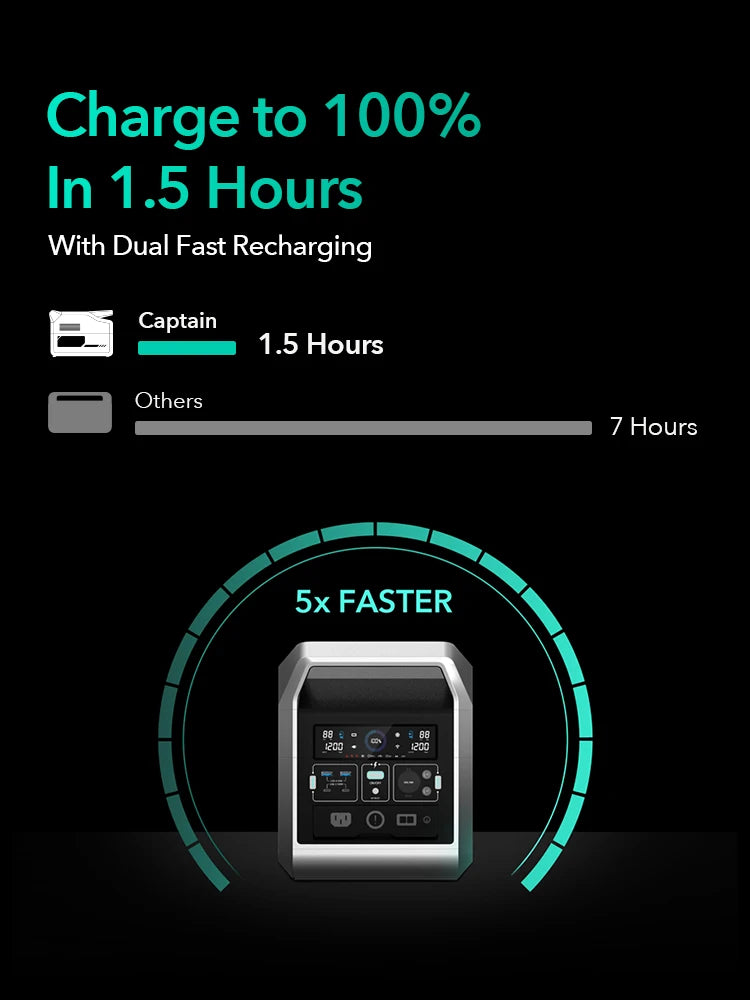 【Rapid Recharge Technology】: Charging efficiency redefined. The Captain 1200 harnesses dual rapid charging, restoring full power in an astonishing 1.5 hours or less. Stay powered up without delay.
