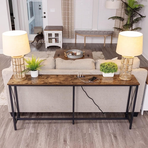 You can complete your home with this sleek sofa table in the living room or entryway. Vintage texture and sturdy metal frame easily create an atmosphere of elegance.
