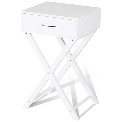 X-Shape 1 Drawer Nightstand End Side Table Storage in White