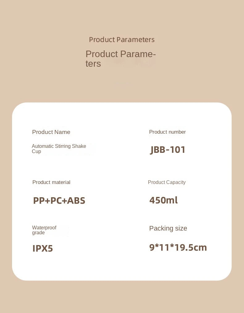 texture of material; lid; PP、 Cup; PC、 host; ABS、 The stirring rod; PP