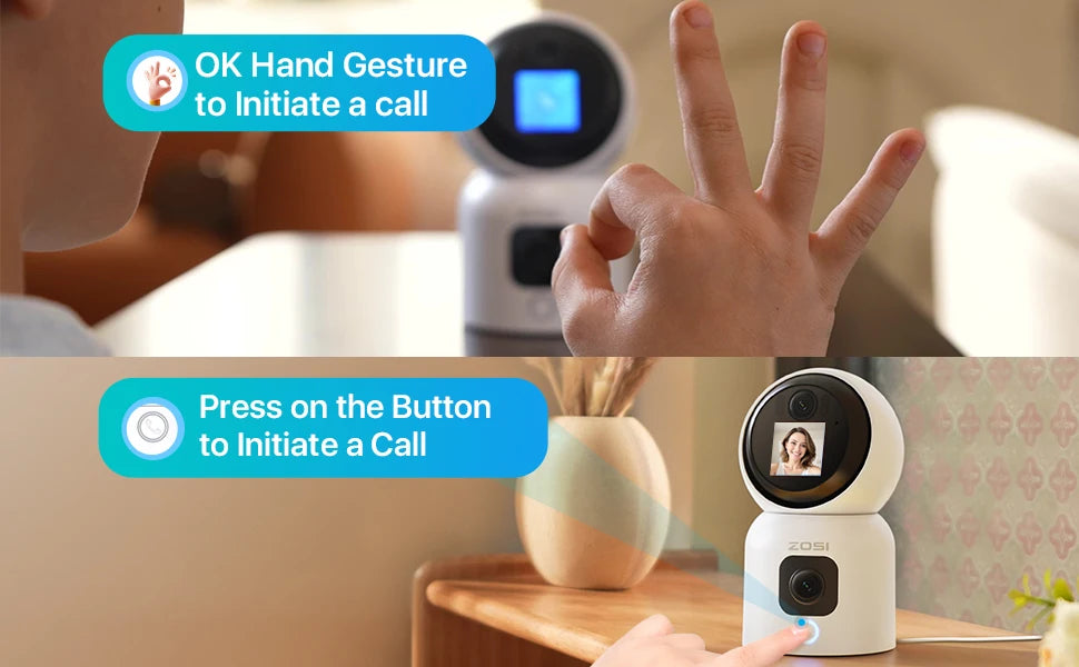 Initiate family calls instantly with a camera button or OK gesture, strengthening bonds in seconds.